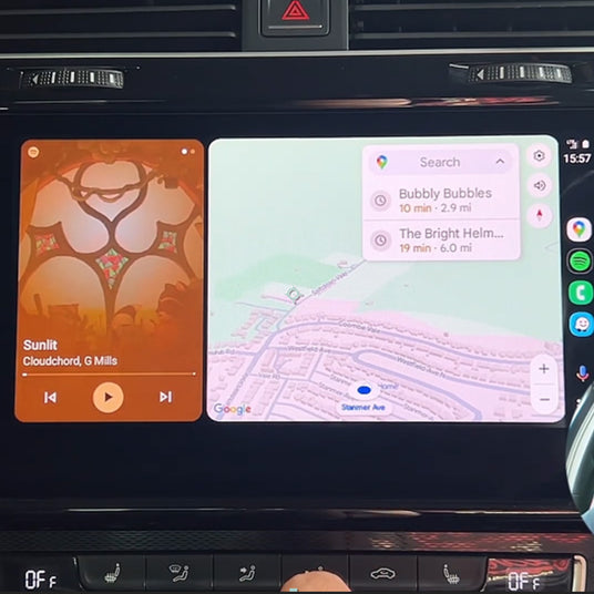 • Split-screen mode allows for multitasking, making navigation and music control easier.