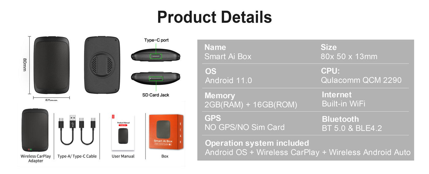 The G4 Android 11 Smart AI Box effortlessly converts wired CarPlay and Android Auto connections into wireless ones, allowing for seamless integration without the clutter of cables. What sets the G4 apart is its built-in Android 11 system, making it a versatile 3-in-1 smart AI box. This integration means not only do you get to enjoy the convenience of wireless connectivity for your Apple or Android devices, but you also gain access to a range of Android 11 features directly from your car's dashboard.